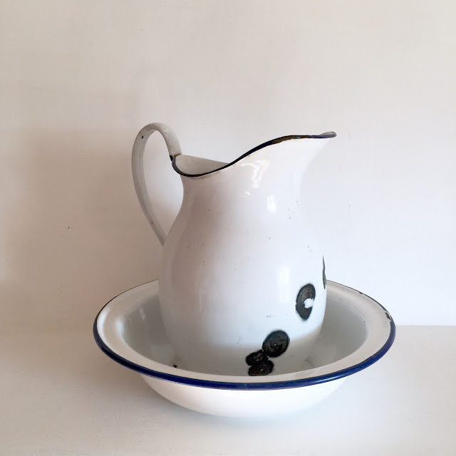 If you can find an old enamel jug as well, even better. If we get to the point of having no water coming out of our taps, a jug like this filled with water for washing will look much better than any plastic container.