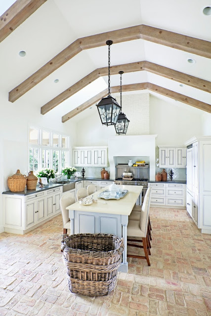 Don't you envy the size of this kitchen island with all the fabulous space around it? You could easily accommodate 10 people around it, all chopping, stirring, carving and assembling, while you just issue orders with a glass of wine in hand. Sounds like my type of food prep!